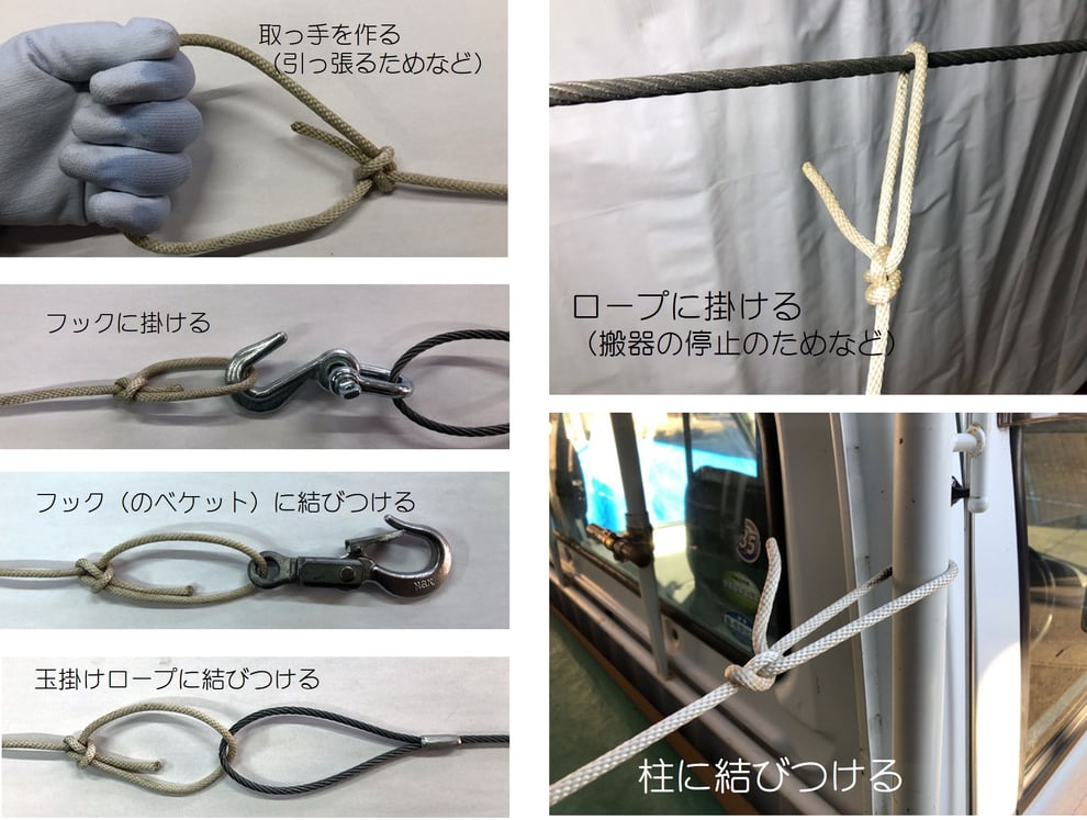 簡単に輪っかが作れ、結びが強力で、簡単にほどける「もやい結び」(舫い結び) は