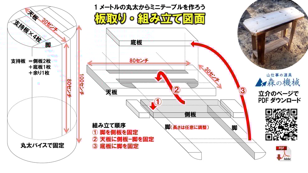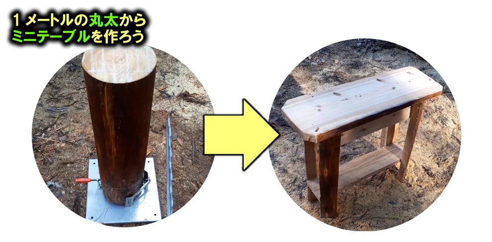 このミニテーブルを作るのに、径が30センチ、長さ1メートルの丸太を使います。