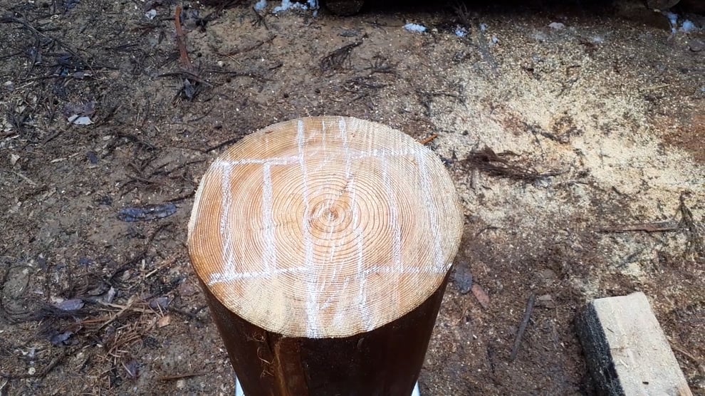 丸太は径が30センチ。長さ1メートルのところで切ります