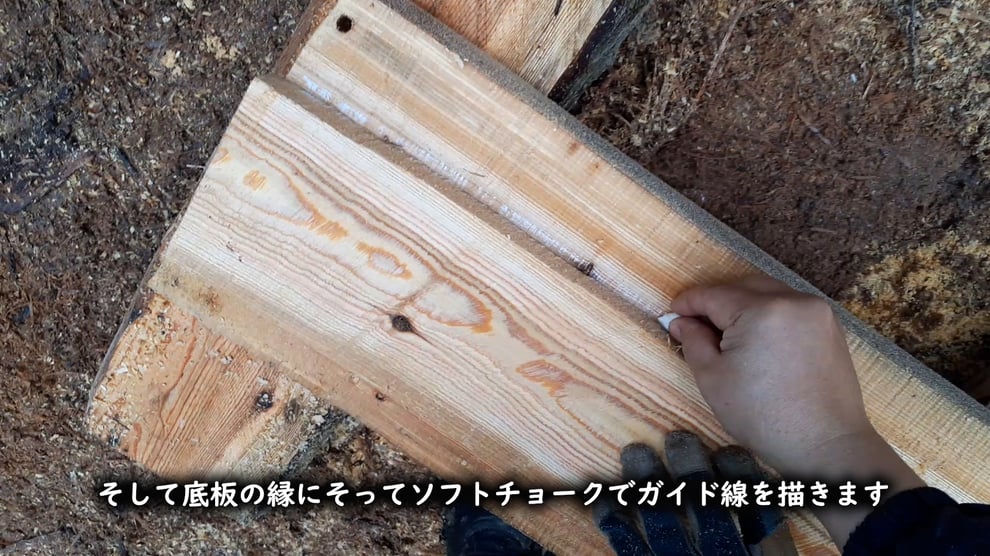 生木は切った直後から少し反りが入ります。ここでは反りの少ないものを底板に選びました。