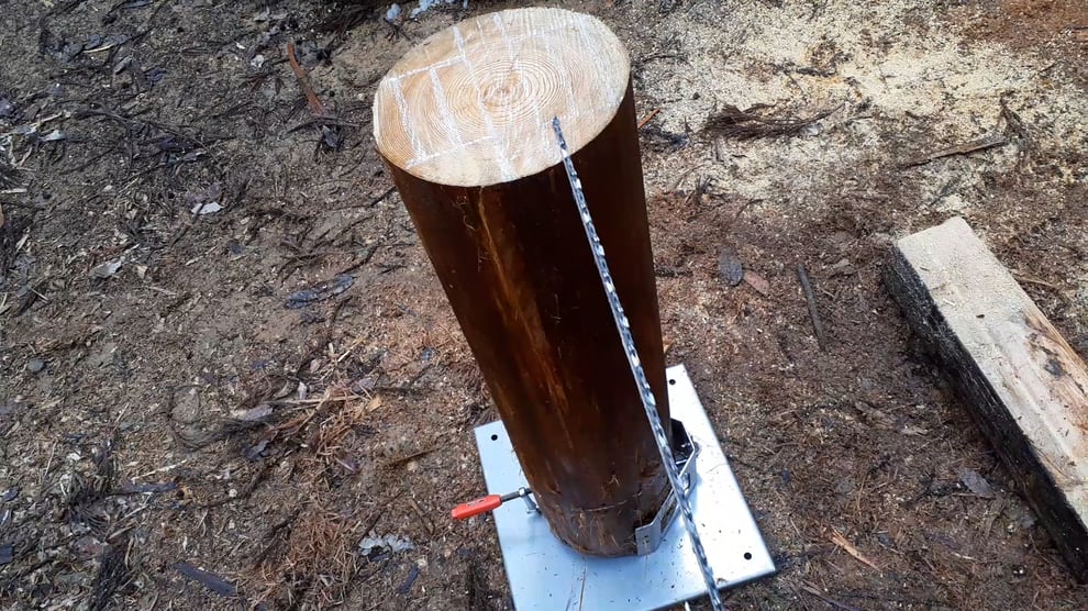 丸太を真っ直ぐ切るには丸太バイスを使って直立させることが大事です。