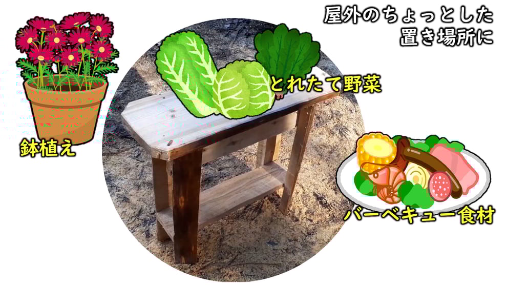 鉢植えやとれたて野菜、バーベキュー食材など、ミニテーブルの用途はさまざまです。