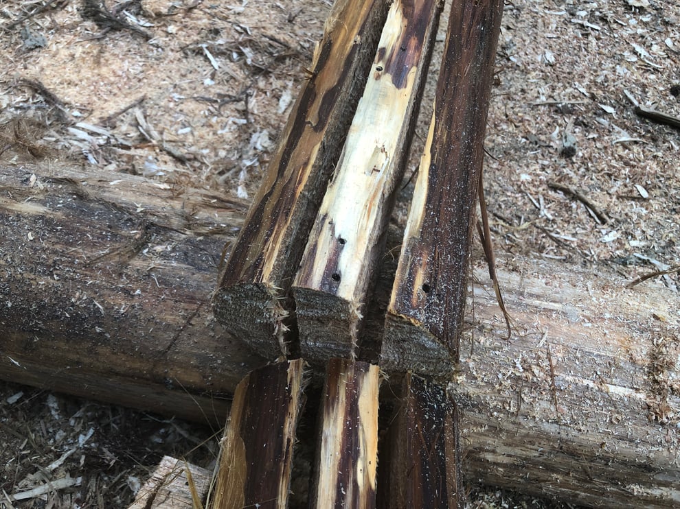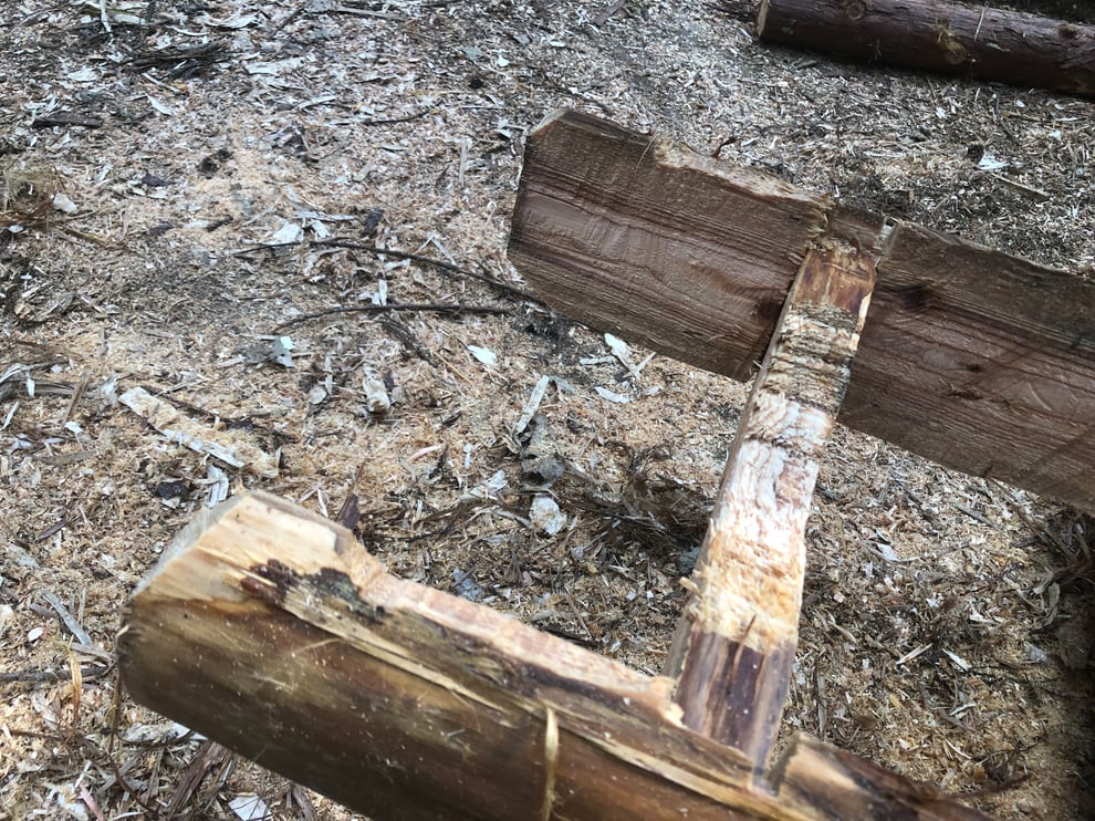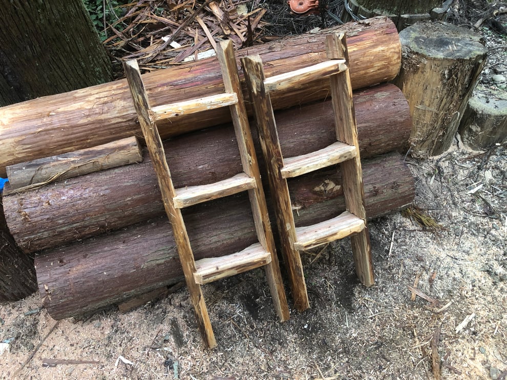 ここでは、一本の丸太から梯子を2脚作る手順を解説します。