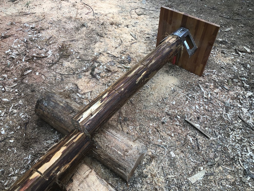 必要な材料は、小径木の丸太です。今回は末口16センチ×長さ210センチでした。