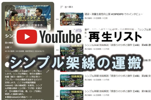 YouTube森の機械公式チャネル >再生リスト「シンプル架線の運搬」にリンクします。