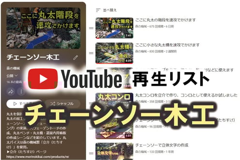 YouTube森の機械公式チャネル>再生リスト「チェーンソー木工」にリンクします。