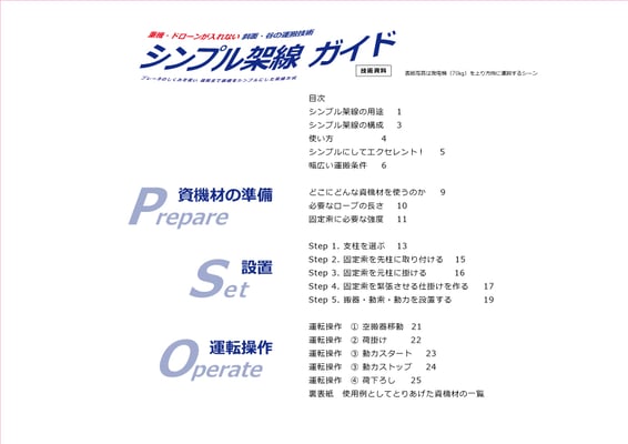 写真・イラスト豊富に、資機材準備~設置~運転操作の手順を分かりやすく解説。A4サイズ×25ページの冊子です。
