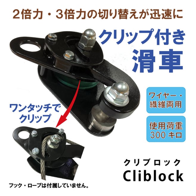 Cliblockは2倍力の動滑車としてもお使いいただくことができます。