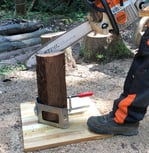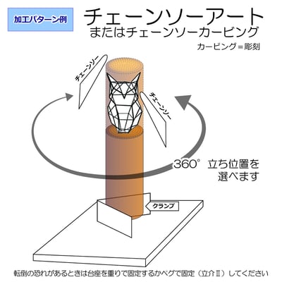 チェーンソーによる加工は、丸太の一端を固定するだけで安全で創意あふれた作業に!